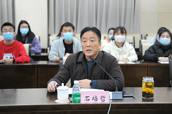 石培哲对青年学生提出三点意见建议,一是要脚踏实地,学好理论知识,为以后的发展奠定坚实的基础;二是要仰望星空,立好人生志向,为未来的发展树立正确的导向;三是要矢志奋斗,交好青春答卷,作不枉此生、不负时代、不负伟大盛世的优秀青年骨干。最后,他勉励广大青年学生弘扬伟大建党精神,争做新时代坚定的青年马克思主义者,为实现中华民族伟大复兴而贡献青春力量。