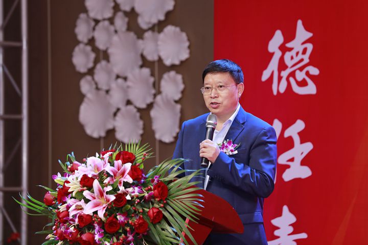 校领导郑广华为获得“突出贡献奖”的校友颁奖