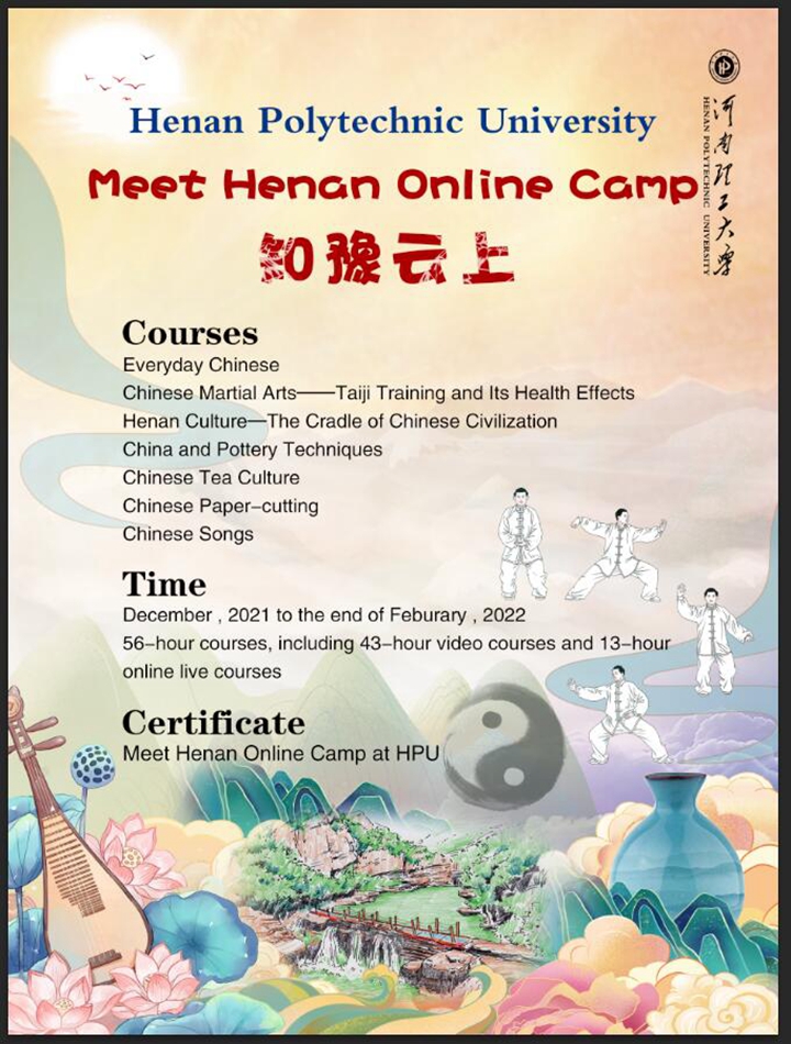 该项目依托我校中文、太极、艺术等相关特色学科,研发中文、太极、怀川文化、绞胎瓷、黑陶、民乐等河南特色传统文化课程,以克服疫情影响,为国外学生提供线上沉浸式学习,感知魅力河南、体验中国文化,促进国际中文教育发展和中外人文交流。