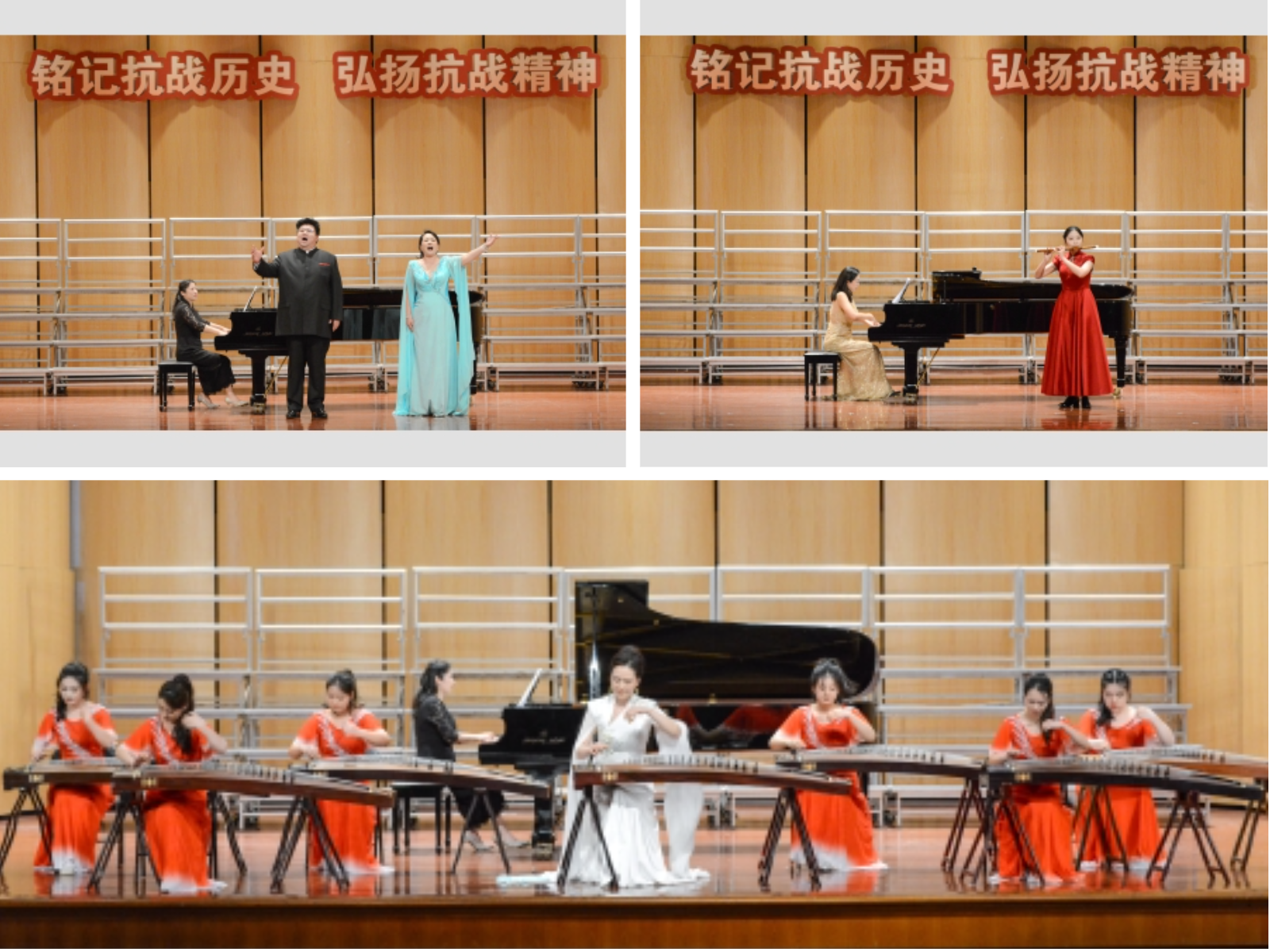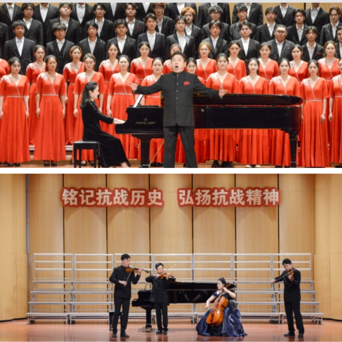 本次音乐会既是落实学校美育浸润行动的生动实践,也是音乐学院教育教学成果的重要展示和音乐与思政融合育人的有益探索。音乐会秉承“音乐叙史·以歌载道·美育浸润”的创作理念,发挥音乐学院学科专业优势,创新“音乐+思政”模式,打破传统课堂的边界,将思政阵地延伸至音乐厅,通过一堂多元、鲜活、丰富的沉浸式“音乐厅里的思政课”,教育引导师生铭记抗战历史,弘扬抗战精神,以情怀和使命,为加快“双一流”创建和全方位推动特色鲜明高水平一流大学建设汇聚强大力量。