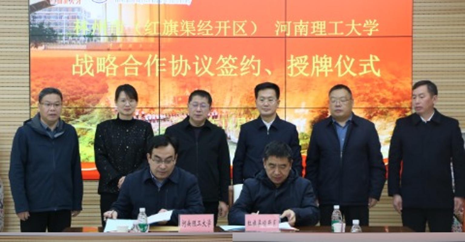 仪式上,许传阳与裴社奇代表双方签署了战略合作协议。刘树伟向学校授牌“人才工作站”,边亚东向红旗渠经开区管委会授牌“人才就业与教学实践基地”。