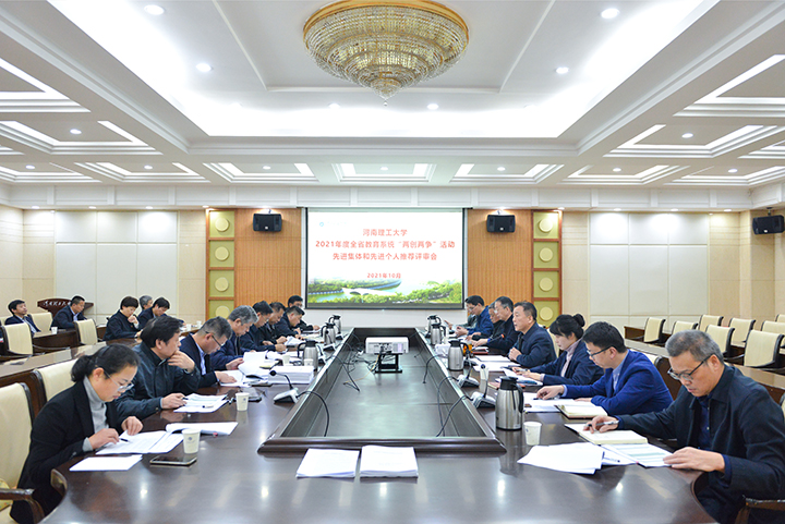本网讯(通讯员 张勐/文 李为群/图)10月27日,学校在力行楼一楼会议室召开2021年度全省教育系统“两创两争”先进集体和先进个人推荐评审会。校党委副书记、校文明办主任石培哲主持会议并讲话,校文明委成员单位相关负责人和申报单位负责人参加会议。