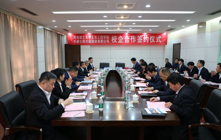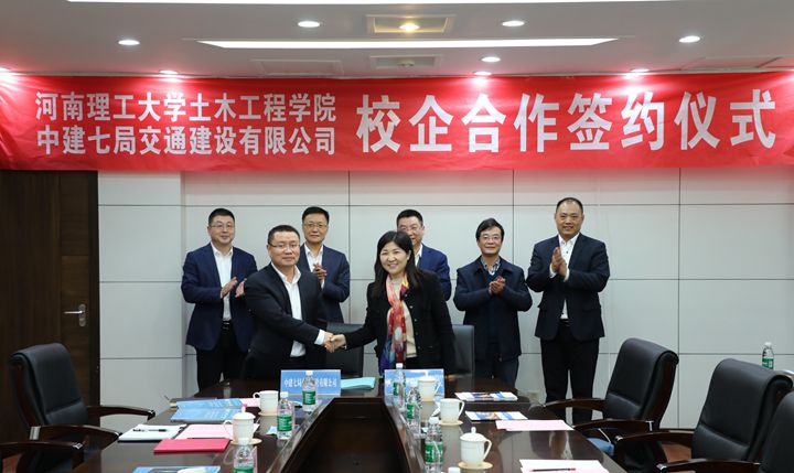 中建七局交通建设有限公司人力资源部、科技与质量管理部、安全生产监督管理部,中原分公司、轨道交通事业部、河南严科检测有限公司相关人员以及土木工程学院领导班子成员、相关系室负责人参加签约仪式。