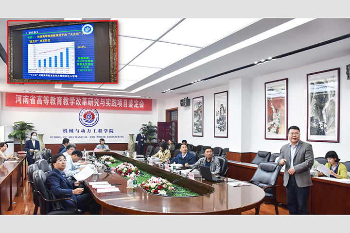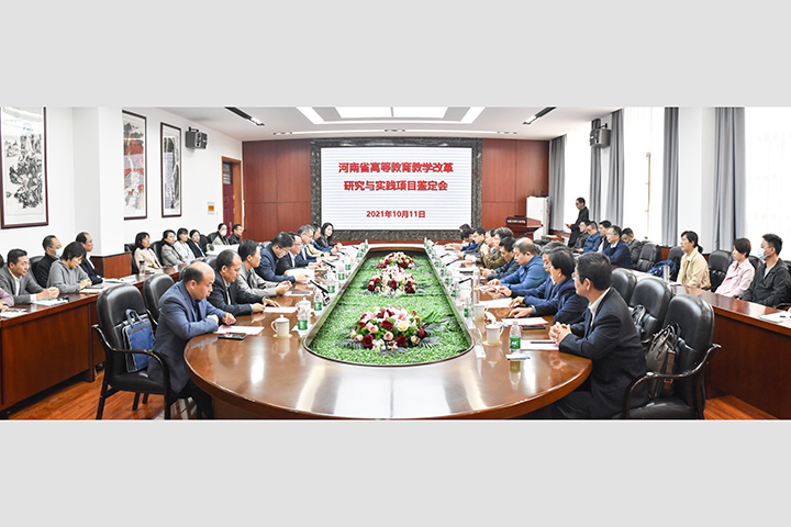 本网讯(通讯员 张秀丽/文 郑智源/图)10月11日,根据河南省教育厅有关要求,学校组织召开2021年河南省高等教育教学改革研究与实践项目鉴定会,对2019年立项的23个省级教改项目(含委托鉴定)以及2020年立项建设的3个新工科项目进行结项鉴定。河南大学副校长阚云超教授、新乡医学院副校长雒保军教授、中原工学院副校长唐多毅教授和郑州航空工业管理学院副校长李捷教授等14名校内外专家共同组成鉴定委员会专家组,阚云超和雒保军分别担任鉴定委员会评议组组长,河南省教育厅高教处主任刘克桥、王灵修莅临指导工作。副校长沈记全出席会议,会议由教务处处长牛海鹏主持。