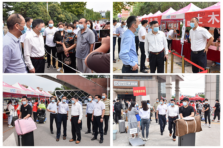 邹友峰一行深入南校区南大门、东大门、西大门、学生宿舍、核酸检测点、明德广场学院新生报到点等地查看迎新工作进展情况。杨小林一行先后到北校区东门、焦工路学院新生报到点、诚正书院、学林餐厅、学生宿舍、核酸检测点等地查看情况。每到一处,校领导都对工作人员和志愿者表示慰问,向他们在迎新工作时的辛勤付出表达感谢。校领导亲切与新生交谈,叮嘱他们要尽快熟悉校园环境,尽早融入大学生活,在这里开启新的人生。