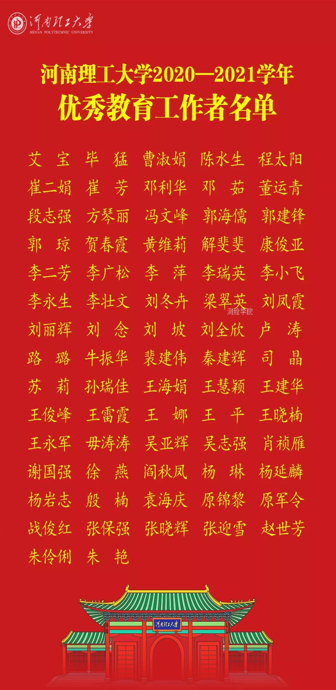 为大力弘扬他们的先进事迹和师德风范,引导广大教职工以德立身、以德立学、以德施教、以德育德,经各单位推荐,校“三育人”活动领导小组评选,校党委研究,决定授予何荣等10名同志“师德先进个人”称号,授予曹银红等91名同志“优秀教师”称号,授予艾宝等72名同志“优秀教育工作者”称号,并予以表彰。表彰名单如下: