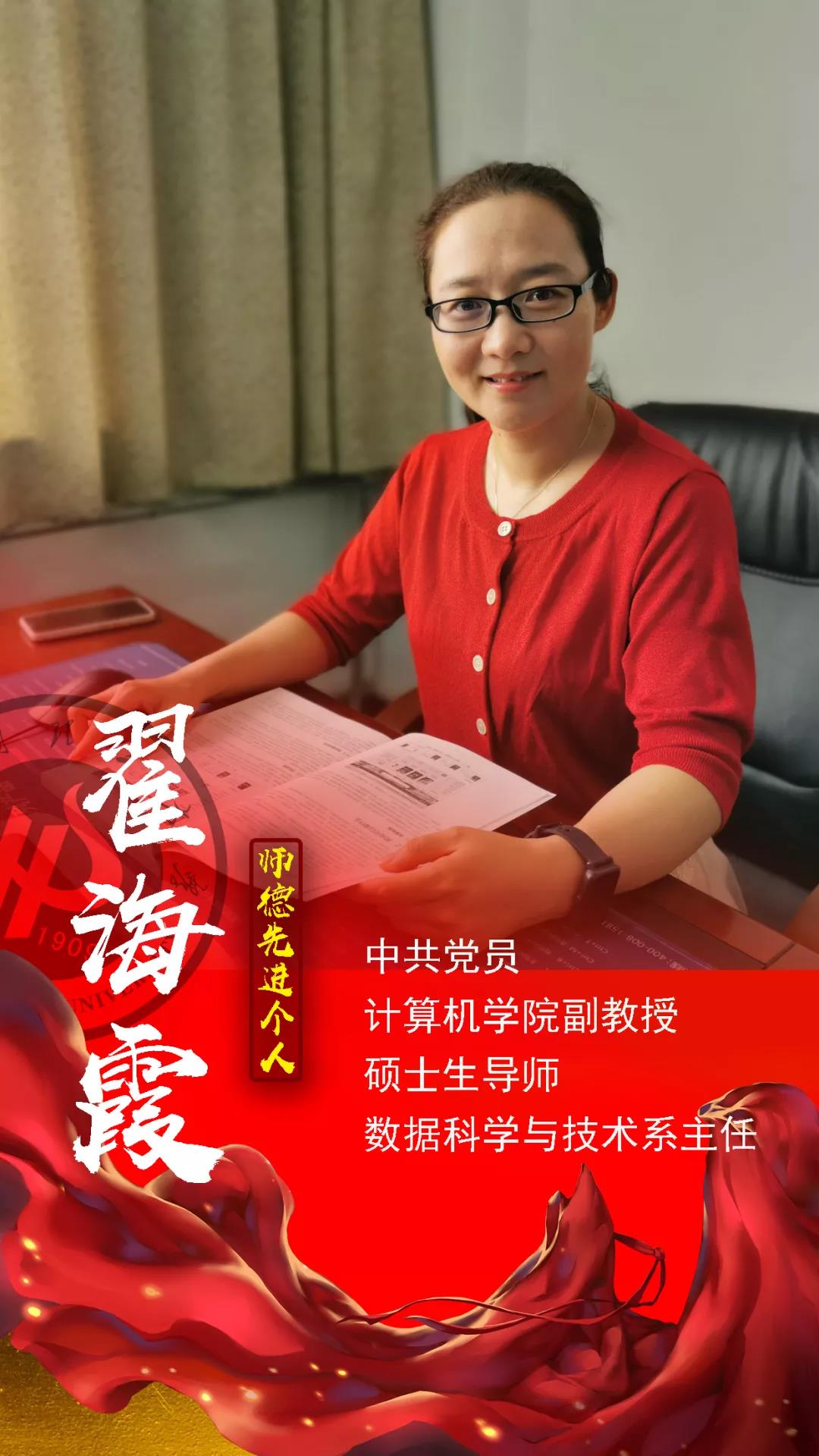 翟海霞,1978年生,中共党员,计算机科学与技术学院副教授,硕士生导师,数据科学与技术系主任。