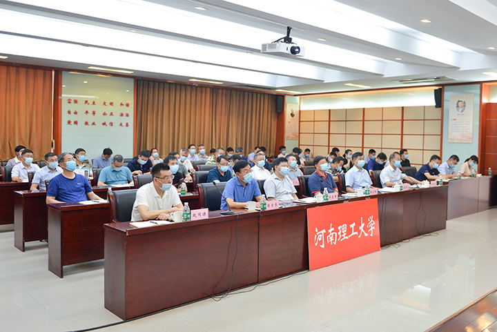 学校在明德楼一楼会议室设立河南理工大学分会场。校领导邹友峰、杨小林、陈自录、赵俊伟、赵同谦、翟耀南、沈记全、郑广华参加视频会议。