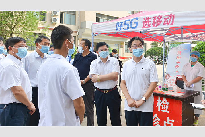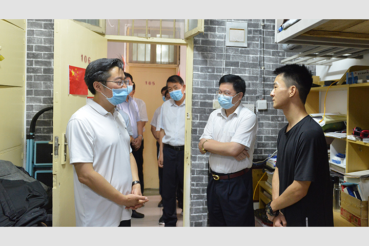 在南大门入校卡点,李亦博详细询问了师生进出校园的管理措施,查看了疫情防控的相关管理要求以及出入校门登记情况,要求一定要确保严防死守,坚决防止疫情隐患进入校园。在校医院,他听取了学校在疫情信息告知、师生健康状况排查、防疫物资发放、公共场所消杀、发热病人处置等方面的工作,要求学校要进一步加强专业防护,充分发挥“哨点”作用,严格落实预检分诊制度,规范发热患者转运处置流程。在学生宿舍,他与学生交谈中,了解了学生宿舍消毒、健康监测、个人防护等情况,并叮嘱学生要严格按照防控要求,坚持以战时状态保障自身安全。李亦博最后强调,要落实暑期留校师生疫情防控措施,提前做好开学前准备工作,统筹抓好食品、消杀等安全工作,确保师生健康平安。