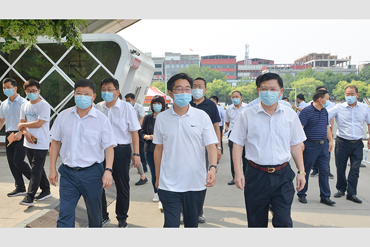 本网讯(记者 胡华伟/文 李为群/图)8月11日上午,焦作市市长李亦博莅校检查指导疫情防控工作。焦作市领导薛志杰、杨吉喜,校党委书记邹友峰、校长杨小林、副校长翟耀南陪同检查。