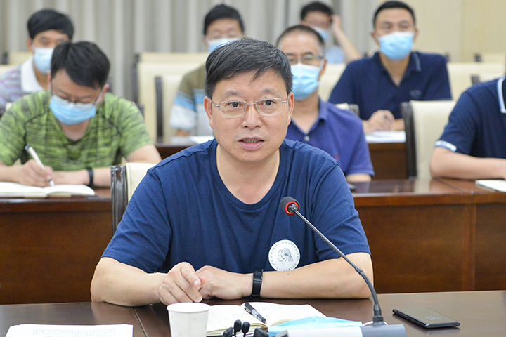 本网讯(记者 胡华伟/文 李为群/图)8月7日上午,学校在力行楼一楼会议室召开疫情防控工作推进会议。校党委书记邹友峰出席会议并讲话,校长杨小林主持会议,副校长沈记全出席。