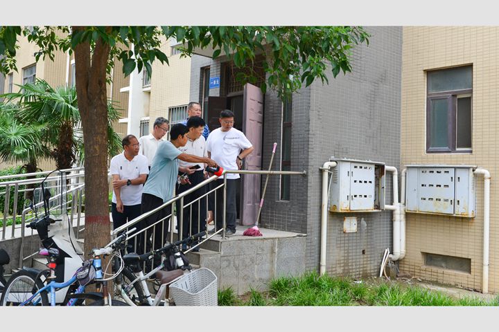 本网讯(记者 胡华伟/文 李为群/图)7月24上午,校领导邹友峰、杨小林、解伟、赵同谦、翟耀南等,实地指导查看暴雨后学校险情防范及后续师生安全、生活保障工作。