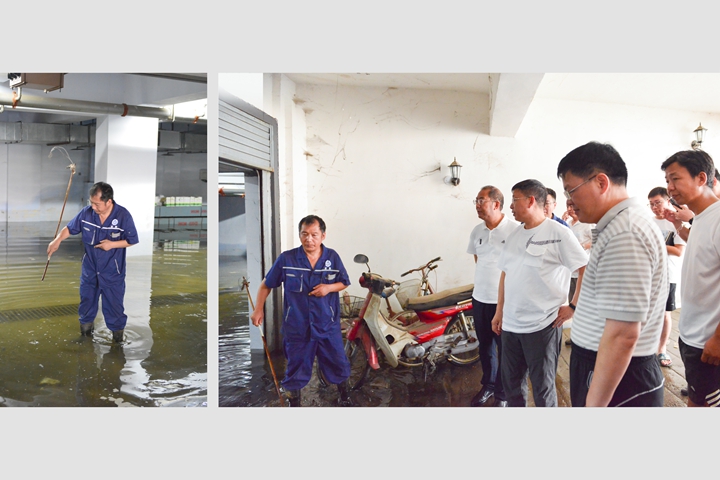 校领导先后来到学校南侧围墙处、快递中心、中华翰苑小区、滨河花园小区等汛情影响较大的地方。每到一处,校领导都仔细询问, “师生员工的生活受没受到太大影响?”“路面和地下室的积水什么时候能排完?”……相关工作人员及时向校领导汇报受灾情况、应对措施和工作进度。