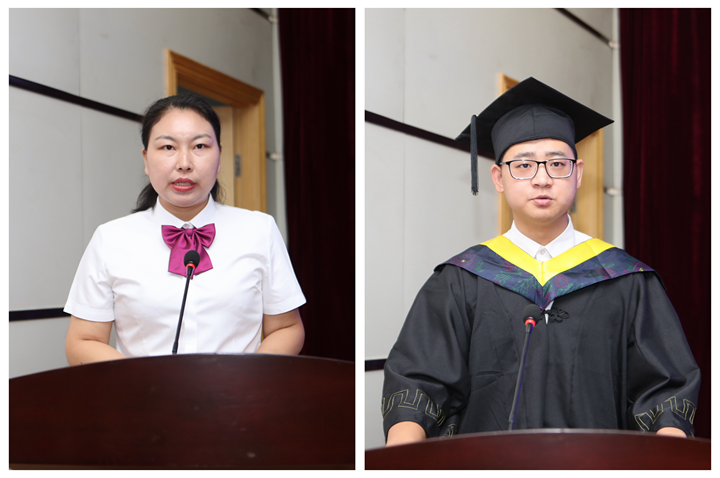 学生处、教务处负责同志分别宣读了《河南理工大学关于颁发本科毕业生毕业证书的决定》《河南理工大学关于授予本科毕业生学士学位的决定》。任国园和张祥利分别代表教师和毕业生进行了发言。沈记全、李树伟共同为全体毕业生拨流苏、颁发学位证书。