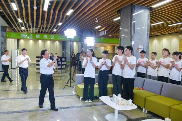 王明义还与大家分享了学生时期自己取得优异学习成绩和做好学生会工作的路子和办法,分享了大学期间历历在目、终生难忘的师生深情、同窗厚谊,与大家一起重温了习近平总书记在纪念五四运动100周年大会上的重要讲话,勉励同学们认真学习好、切实践行好习近平总书记对新时代青年的期望和要求,要树立远大理想、热爱伟大祖国、担当时代责任、勇于砥砺奋斗、练就过硬本领、锤炼品德修为,努力成为德智体美劳全面发展的社会主义建设者和接班人。最后,王明义还在现场与同学们一起合唱了《唱支山歌给党听》,唱出了理工人爱党爱国的热情,祝福伟大的中国共产党成立100周年。