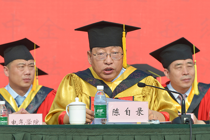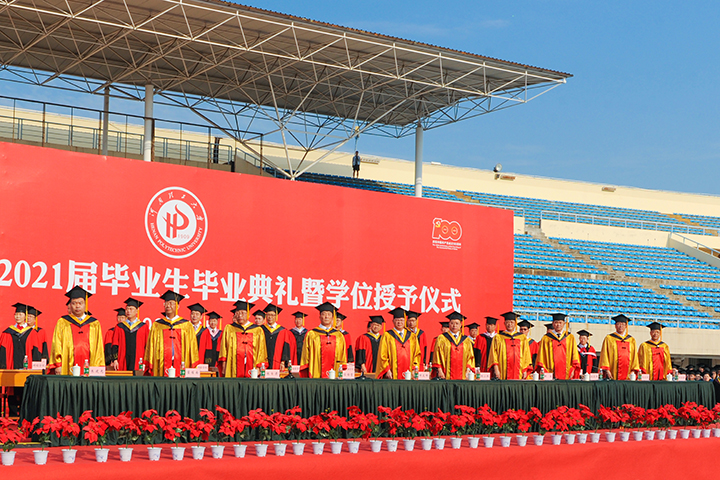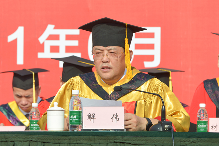 校领导邹友峰、杨小林、解伟、陈自录、赵俊伟、翟耀南、沈记全、朱建光、郭相春出席典礼,各学院、相关职能部门负责人、教师代表、2021届全体毕业生参加仪式。仪式由校党委副书记石培哲主持。