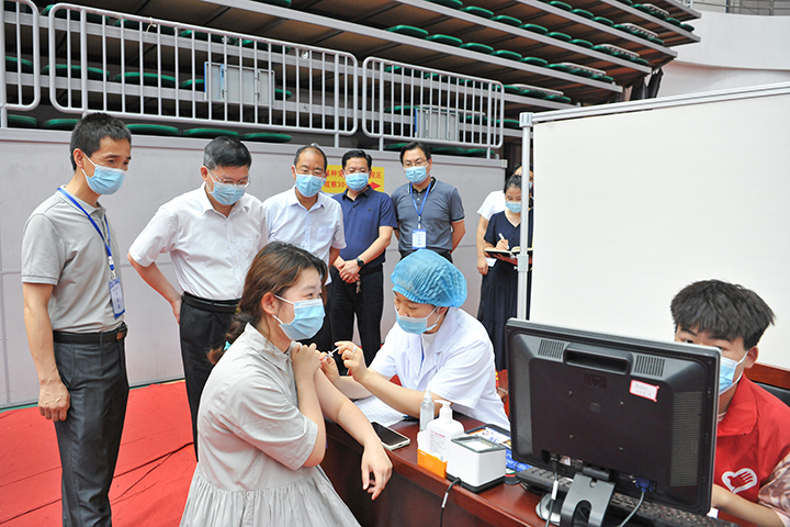 邹友峰要求,各相关部门在做好疫苗接种各环节预定工作的同时,要及时发现解决现场出现的问题,为后续接种工作的顺利进行提供借鉴。他强调,最近天气炎热,要合理安排时间,避免师生长时间等待,统筹用好场地,让师生能安全、有序地完成接种。对接种中个别出现异常反应的师生,要认真观测身体健康指标,做好后续安置工作。各工作专班要通力合作,全力以赴做好第二针新冠疫苗的接种工作,为全校师生营造健康、安全、舒适的校园环境。