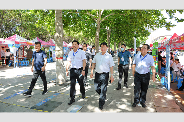 本网讯(通讯员 丁蕴哲/文 李为群/图)为深入贯彻落实党中央、国务院关于高校就业工作的指示精神和中央教育工作领导小组第六次专题会议要求,进一步做好2021届高校毕业生就业工作,确保高校毕业生离校时就业大局稳定,我校于6月5日在南校区明德广场举办2021年第五场春季校园双选会。校党委书记邹友峰、校长杨小林、校党委副书记解伟等莅临现场与招聘单位和毕业生进行亲切交流,同时对就业工作予以指导。
