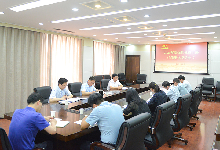本网讯(记者 芦晓伟/文 李为群/图)6月1日下午,学校在行政楼二楼会议室召开第二批新提任处级干部任前集体谈话会议,校党委副书记石培哲、校纪委书记(监察专员)陈自录出席。组织部相关负责人和6位新提任处级干部参加会议。会议由组织部部长郎付山主持。