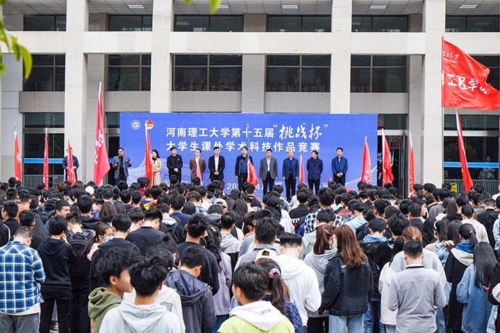 本网讯(通讯员 刘鹏杰/文 王红涛 郑智源/图)4月24日,我校第十五届“挑战杯”大学生课外学术科技作品竞赛校级决赛在三号教学楼举行。副校长沈记全出席开幕式,教务处、科技处、社科处、人事处、学生处、研究生院、创新创业学院、招生就业处、工程训练中心、校团委相关负责人以及专家评委、参赛团队指导老师代表、团队成员代表和各学院学生代表共计400余人参加了开幕式。