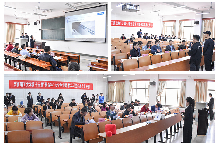 终审决赛采取海报展示、书面会评、现场答辩三个环节相结合的方式进行。各参赛团队通过PPT、视频等多媒体形式,对参赛作品进行陈述和讲解,专家评委从作品的科学性、先进性和现实意义等三个方面对作品进行了评审和质询。经评委老师评审,共评选出51件作品作为拟推荐参加第十五届“挑战杯”河南省大学生课外学术科技作品竞赛候选作品。