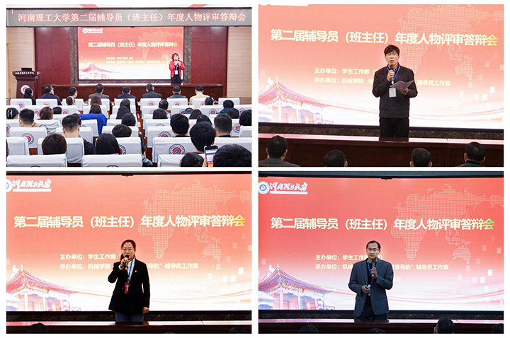 答辩会上,还评选出了外语学院团委书记王雷霞为河南理工大学第二届辅导员年度人物突出奖、土木学院何军为河南理工大学第二届辅导员年度人物特别奖。