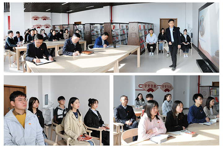 本网讯(记者 苏丽敏/文 李为群/图)为深入推进党史学习教育,喜迎建党100周年,3月24日,学校党办支部、组织部支部与部分学生党员,在南校区第二图书馆党史图书主题阅览室联合开展了“共学党史、同守初心”主题党日活动。校党委书记邹友峰、校党委副书记石培哲参加党日活动。