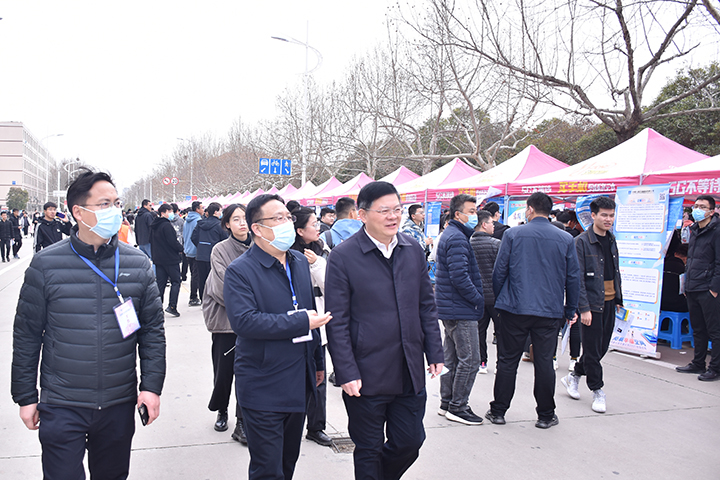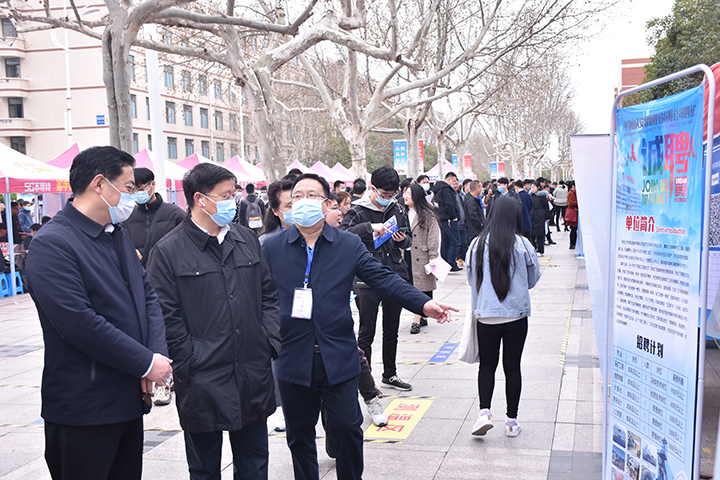 本网讯(记者 李为群 郑智源/图 通讯员 丁蕴哲/文)为满足广大毕业生求职需求,3月20日,我校2021年首场春季校园招聘会在南校区明德广场顺利举办。校党委书记邹友峰、校长杨小林、校党委副书记解伟等出席活动现场,与用人单位和毕业生进行亲切交流了解招聘情况,同时对学校就业工作进行指导。