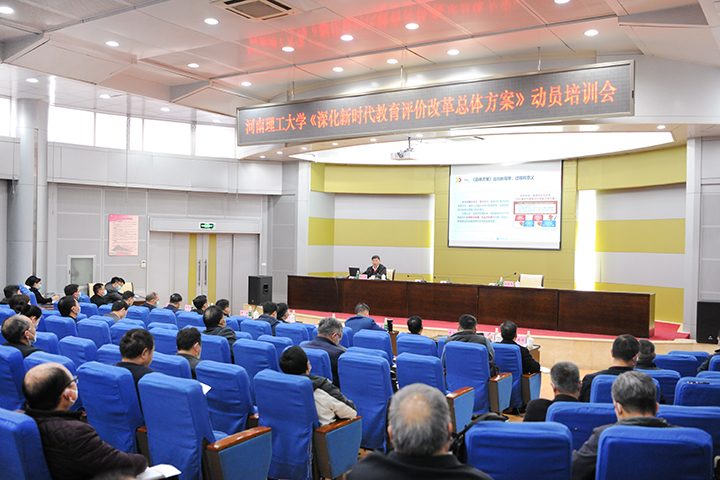 本网讯(记者 赵佳/文 李为群/图)3月18日下午,学校在南校区力行楼学术报告厅召开《深化新时代教育评价改革总体方案》(以下简称《总体方案》)专题培训会,校长杨小林主讲。校领导邹友峰、石培哲、解伟、陈自录、赵俊伟、赵同谦、翟耀南、朱建光、郭相春出席。会议由副校长赵俊伟主持。