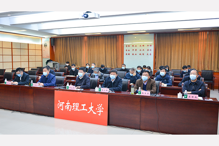 本网讯(记者 李为群/图) 3月11日,2021年全省教育系统全面从严治党工作大会在郑州召开,我校在明德楼一楼会议室设立河南理工大学分会场,校领导邹友峰、杨小林、石培哲、陈自录、赵同谦、翟耀南参加视频会议。