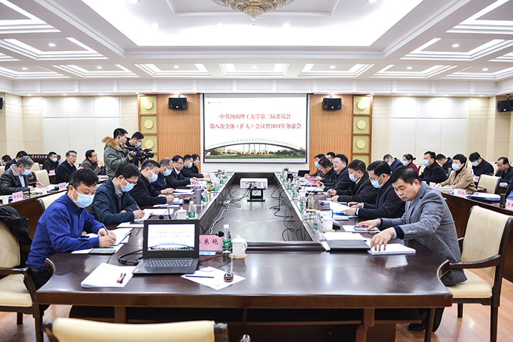 本网讯(记者 苏丽敏/文 李为群 郑智源/图)凝聚智慧,共谋发展。2月27日,中共河南理工大学第二届委员会第八次全体(扩大)会议暨2021年务虚会在力行楼一楼会议室召开,会议旨在学习贯彻党的十九届五中全会精神,聚焦“国内一流特色高水平大学”建设目标,研究谋划“十四五”时期学校事业发展愿景蓝图。全体校领导出席。会议由校党委书记邹友峰主持。