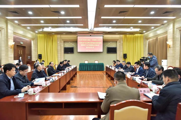 本网讯(通讯员 倪小明 吕闰生)2月1日下午,学校与中国平煤神马集团在该集团会议中心隆重举行平顶山矿区瓦斯灾害地面高效治理暨煤系气开发战略合作协议签约仪式。校长杨小林、副校长赵同谦,集团总经理杜波、副总经理张建国、总工程师李延河出席签约仪式。仪式由张建国主持。