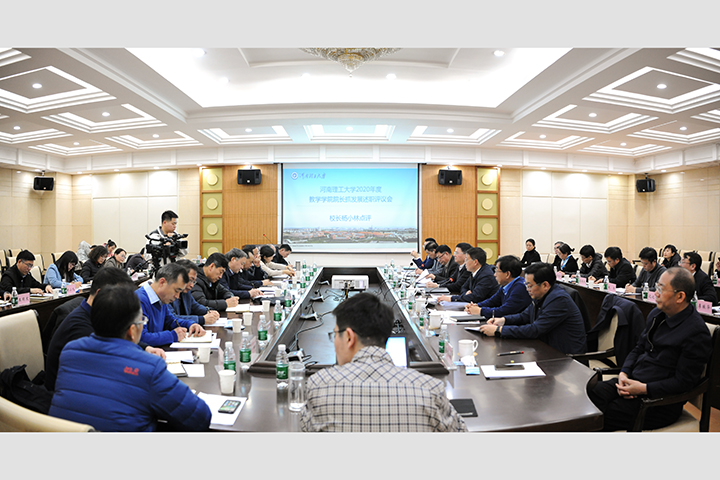 校党委书记邹友峰讲话。他对各教学学院一年来取得的成绩给予了充分肯定,认为既有亮点,又有特色,对述职的各位院长和院领导班子成员的辛勤工作以及为学校发展做出的贡献表示感谢。他指出,教学学院作为学校基本的行政单位、教学科研单位和学生教育管理单位,工作涉及面广、头绪多、任务重。各位院长在开展工作时,既要抓全面、全面抓,又要善于找准关键点、抓好创新点、聚力突破点,才能切实履行好职责,推动学院工作出成绩、上层次。就进一步做好工作、谋划好发展,邹友峰强调,一是聚焦重点工作,实现新发展。要做好系统谋划,抓住机遇,抓住重点,寻求突破,通过做好“大事”“要事”,真正推动学校的事业高质量发展。二是聚焦“十四五”规划,开启新征程。要全面总结“十三五”期间的发展经验和不足,瞄准差距,深挖根源。认真谋划“十四五”规划,做好顶层设计,结合新工科、新文科、新医科建设要求,找准省内外发展对标单位,科学设定发展指标,使“十四五”规划能够真正可操作、能引领、起作用、促发展。三是聚焦责任落实,展现新作为。2021年,学校管理重心将持续下移,学院运行的自主权越来越大。各位院长作为行政“一把手”,要操好心,做好分工,压实责任。邹友峰强调,各学院条件不同、特色不同、优势不同,未来五年,要把学科教学、科学研究、人才队伍等各方面的工作,做得更加扎实,更有成效,共同推进“双一流”建设、推动各学院和学校事业发展取得迈上新台阶。