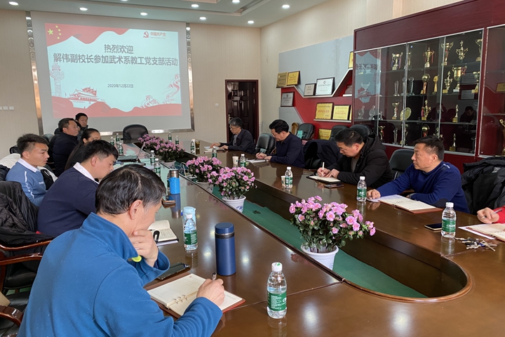 本网讯(通讯员 常朝阳 李好永)12月22日下午,体育学院武术系教工党支部在学院小会议室开展“我·党员·学科发展”主题党日活动,紧紧围绕党支部建设与武术系学科建设的关系进行研讨。校党委常委、副校长解伟参加活动并讲话。
