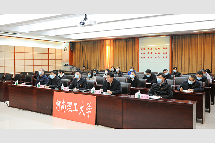 12月21日上午,全省教育系统一体推进不敢腐不能腐不想腐深化以案促改工作会议召开,省纪委常委、监委委员赵连生出席会议并讲话,省教育厅党组成员、副厅长毛杰作部署推进讲话,省高校纪工委书记、省纪委监委驻教育厅纪检监察组组长朱俊峰主持会议。学校在明德楼一楼会议室设立分会场,校领导邹友峰、张锟、陈自录、赵俊伟、翟耀南参加视频会议。