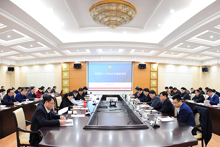 本网讯(通讯员 黄峰/文 记者 李为群/图)12月10日下午,学校在力行楼一楼会议室开展2020年集体廉政谈话。校领导邹友峰、杨小林、张锟、陈自录、赵俊伟、赵同谦、翟耀南出席,全校部分党政中层正职参加。会议由校长杨小林主持。