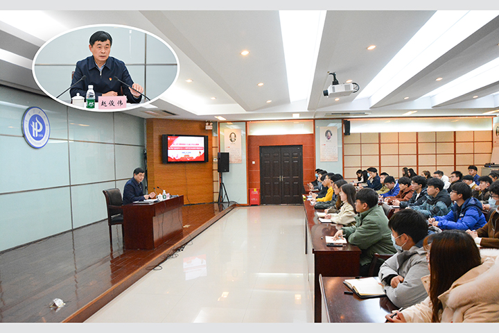 本网讯(通讯员 陈景 张默晗/文 王红涛/图)12月8日下午,副校长赵俊伟以《深入学习贯彻党的十九届五中全会精神,为夺取全面建设社会主义现代化国家新胜利接续奋斗》为题,在明德楼一楼会议室,为团学干部讲授了一堂别开生面的思想政治理论课。