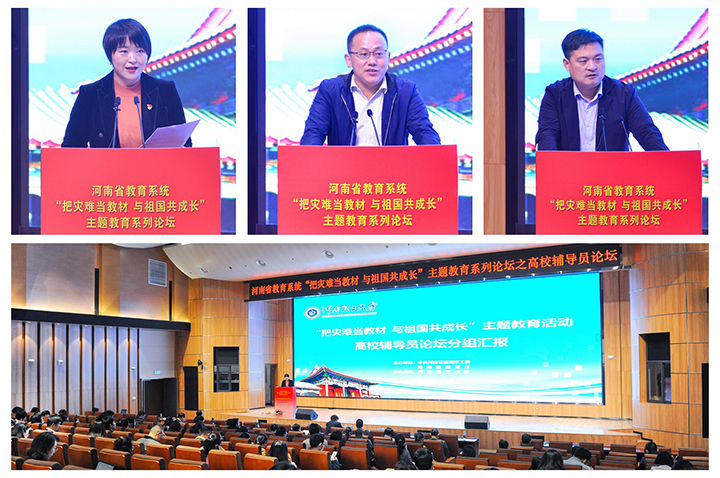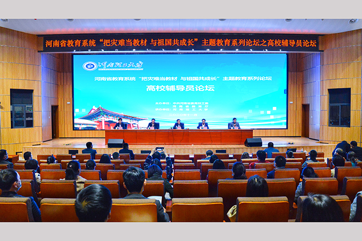 本网讯(通讯员 潘子彦 赵琨/文 记者 李为群 通讯员 郑智源 王红涛 李旭阳/图)11月10-11日,河南省教育系统“把灾难当教材 与祖国共成长”主题教育系列论坛之高校辅导员论坛在我校举办。中共河南省委高校工委专职委员何秀敏,省教育厅思政处处长王继东、副处长徐军保,我校党委书记邹友峰、副校长赵俊伟出席开幕会。来自全省的160余名高校辅导员参加论坛。开幕会由王继东主持。