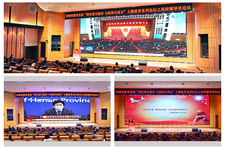 何秀敏在讲话中指出,“把灾难当教材 与祖国共成长”主题教育系列论坛是贯彻落实全国全省高校思想政治工作会议,全国全省教育大会和学校思想政治理论课教师座谈会精神的重要举措,也是落实立德树人根本任务,深入推动“把灾难当教材 与祖国共成长”主题教育活动的重要载体。他强调,一要持续深化“把灾难当教材 与祖国共成长”主题教育活动,与学习习近平总书记重要讲话精神结合起来,与大力弘扬伟大抗疫精神结合起来,与统筹推进常态化疫情防控工作结合起来;二要切实加强辅导员工作室建设,通过明确发展目标、突出品牌特色、完善保障机制,加强和改进辅导员队伍建设;三要充分利用辅导员工作精品项目、辅导员年度人物、辅导员素质能力大赛、辅导员优秀论文等各种平台,推进辅导员工作室建设,培养职业化专业化专家化辅导员工作队伍。最后,他希望全省高校辅导员不忘立德树人初心,牢记为党育人、为国育才使命,坚持围绕学生、关照学生、服务学生,把握学生成长规律,为培养担当民族复兴大任的时代新人,做出应有的贡献。