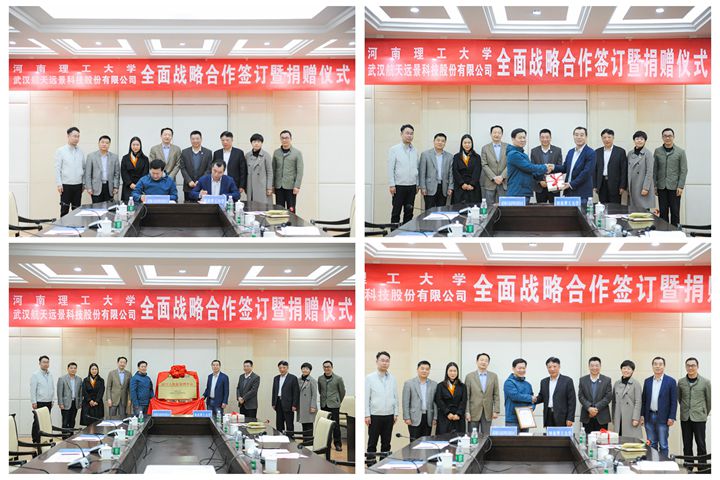 本网讯(通讯员 岳哲/文 记者 李为群/图)11月3日下午,我校与武汉航天远景科技股份有限公司战略合作协议签订暨捐赠仪式在力行楼方形会议室举行。副校长赵同谦、航天远景有限公司联席总裁李京伟出席仪式,校友与社会合作办公室负责人、测绘学院领导和教师代表等参加仪式。签约和捐赠仪式由测绘学院党委书记茹艳主持。