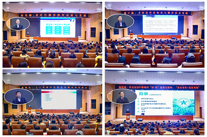 研讨会上,8位专家先后发表主旨演讲。广东外语外贸大学翻译学研究中心主任、全国翻译专业学位研究生教育指导委员会委员兼秘书长赵军峰以《新时代翻译教育创新与发展》为题,指出人工智能战略下, 语言服务正面临新的挑战和机遇, 翻译界同仁应肩负使命、砥砺前行。上海外国语大学教授、全国翻译硕士专业学位教育指导委员会委员韩子满以《多语平行语料库建设与研究:成就与展望》为题,探讨了多语种平行语料库建设的成就,并对其未来发展趋势作了探讨。上海大学外国语学院教授、《上海翻译》执行主编傅敬民以《人工智能时代的应用翻译研究热点》为题,阐述了人工智能给传统翻译带来的机遇和挑战,号召大家积极面对翻译发展的新趋势。郑州大学中国外交话语研究院院长、二级教授杨明星以《外交话语中隐喻的‘译-传’原则与策略:‘政治等效+意象再现’》为题,探讨了外交隐喻的语用策略和语用功能,同时他结合外交隐喻的特殊性提出了外交隐喻的复合性翻译传播标准。中国人民大学外国语学院教授、副院长王建华作了题为《虚拟仿真技术下的口译人才培养》的专题报告,他认为学生可以利用虚拟仿真环境,获取现场口译的实战经验,体验现场口译的真实感,为口译人才培养提供了新的路径。广东外语外贸大学翻译技术与研究中心主任王华树以《人工智能时代的翻译技术研究》为题,梳理了翻译技术的发展和研究趋势,呈现了翻译技术发展的全貌。鲁东大学翻译硕士教育中心主任周兴华以《技术视角下的翻译质量评估研究》为题,探讨了合理评估翻译质量的标准,建议定性评估与定量评估相结合。河南理工大学外国语学院副院长郑忠耀作了题为《电子教室系统下混合学习型笔译教学模式研究》的报告,旨在倡议构建笔译实践教学的新模式。