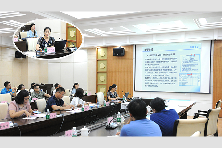 资环学院郑德顺、李成杰,土木学院秦本东、数信学院仝卫卫、测绘学院景海涛、物电学院刘玉金等首批课程思政试点建设课程负责人,分别就课程思政建设情况、特色做法、典型案例、取得成效等方面进行了汇报。其中,资环学院《地质学基础》课程注重课程思政的顶层设计与思政元素的挖掘和加工,从怎样讲好一门课的角度搭建了课程思政建设的框架结构;《水污染控制工程》课程紧密结合污水处理厂的五个知识点,将思政元素自然揉进了教学;土木学院《结构力学》课程从学生的专业背景出发,充分发掘弘扬学生的吃苦耐劳、责任担当意识;数信学院《高等数学》课程注重发挥学生的主体作用,通过话剧、辩论等方式极大激发了学生勤学悦学的主观能动性;测绘学院《地图学》课程突出在地图制图实践环节实施课程思政,把红色元素、时政案例巧妙揉进课程。