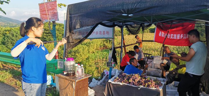 实践前期,实践团通过多方联系走访,将实践地选定在淅川县金河镇张湾村的葡萄园,并根据实际情况制定了实践方案。为达到实践效果,队员们认真学习拍摄剪辑小视频,新闻撰写以及直播“带货”的方法和技巧。实践过程中,团队成员前往果园帮助果农修剪、采摘、运输葡萄,减轻果农工作量,提升工作效率。随后,团队队员按照实践计划,开展线上线下销售葡萄的活动。一天下来共帮助果农卖出70公斤葡萄,收入1026元,鼓舞了实践团的参与实践活动的士气。