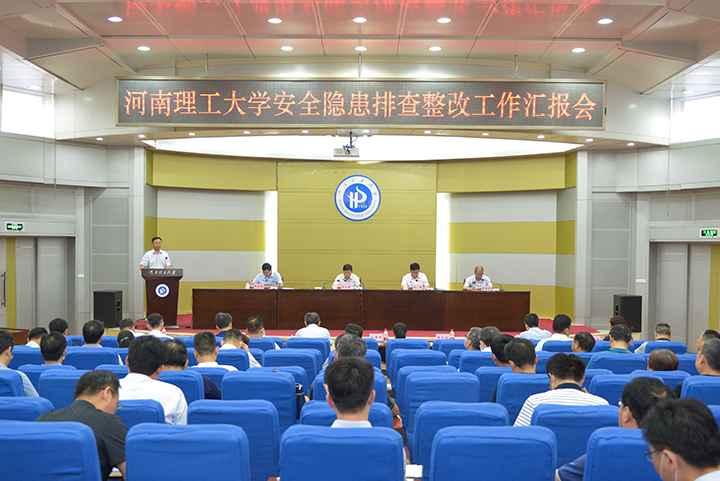 6月30日下午,学校在力行楼学术报告厅召开安全隐患排查整改工作汇报会。校长杨小林、副校长张锟、校工会主席翟耀南出席会议,副校长赵俊伟主持会议。治安综合治理委员会委员、各党委(党总支)、相关职能部门负责同志参加会议。