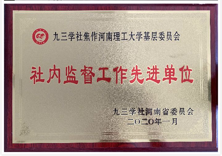 近日,我校九三学社基层委员会获九三学社河南省委员会表彰,九三学社河南理工大学基层委员会,被授予“社内监督工作先进基层委员会”,九三学社社员吴现为,荣获“社会服务工作先进个人”称号。