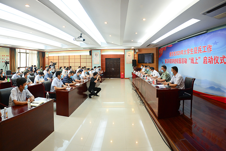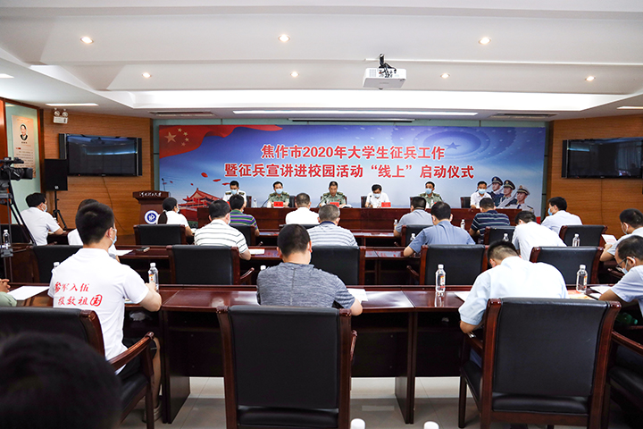 “放飞青春梦想,铸就军旅辉煌”。为做好大学生征兵宣传动员工作,营造大学生征兵工作良好氛围。在这个抗击疫情的特殊时期,学校与焦作市军分区于6月4日下午联合举办了2020年征兵线上启动仪式。校党委副书记安士伟,焦作市征兵办公室主任、焦作军分区副司令员王志敏、军分区动员处处长鲁杰干、政治工作处主任徐明出席启动仪式。校宣传部、学生处、校团委、武装部负责人及各学院副书记和学生代表80余人在主会场参加仪式,驻焦高校分管领导和驻焦高校大学生通过网络直播同步收听收看。