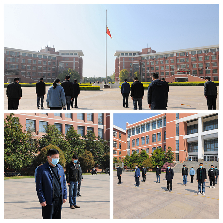 国旗低垂,举国同悲。4月4日上午7时,学校在图书馆世纪广场举行了下半旗仪式。10时整,防空警报鸣响,校党委书记邹友峰来到世纪广场,与机关党委部分值班人员和自发前来的教师员工一道,面向国旗肃立,向新冠肺炎疫情牺牲烈士和逝世同胞默哀,全校师生就地就便准时参加了哀悼活动。