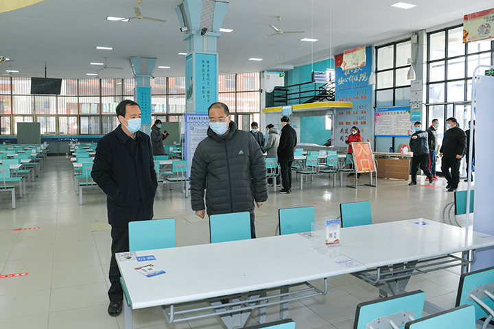 冯利民先后来到学校学苑餐厅、校医院、学生公寓、校内隔离区、博雅苑超市等校内疫情防控重点区域,现场查看了餐厅测温区、引导区、就餐区设置和就餐管理制度;校医院医务人员配备情况和应急防控预案;学生公寓防控管理制度和消毒记录台账等;隔离区房间设置数量、标准以及防疫物资储备情况;超市清洁消毒和商品配备情况,并详细听取了各处现场工作人员关于防控措施实施的汇报。
