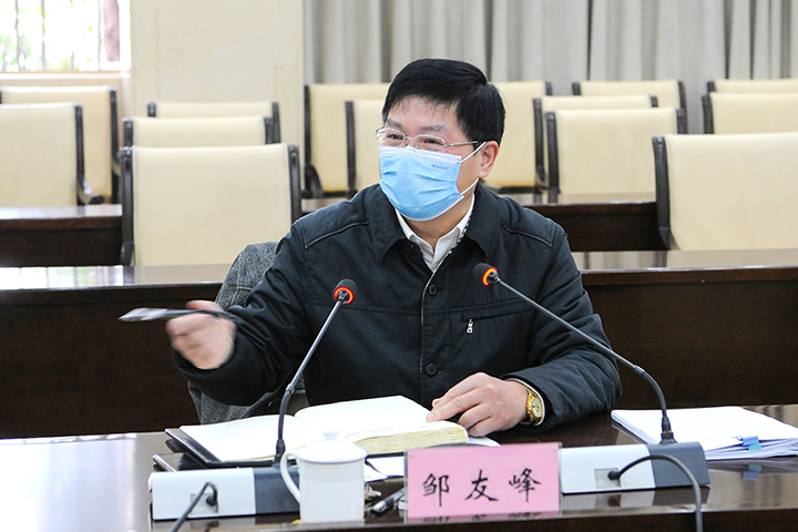 邹友峰指出,全省新冠肺炎疫情防控指挥部教育系统工作专班电视电话会议为我们进一步做好学校疫情防控工作指明了方向,明确了工作标准和具体要求。对照会议精神,特别是省委常委、宣传部长、省高校工委书记江凌在会上的讲话要求,我们前期的工作还有需要改进的地方。邹友峰强调,各单位要把形势估计得更严峻一些、把问题思考得更深入一些、把措施制定得更周密一些、把学校的防控疫情之网扎得更紧实牢固一些,坚决把疫情阻击在校园之外,同时为尽早开学准备充分条件,全力保障师生健康,维护校园和谐稳定。