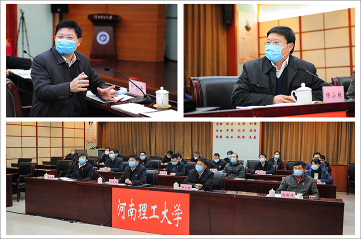 2月26日下午,河南省新冠肺炎疫情防控指挥部教育系统工作专班组织召开全省高等学校疫情防控工作视频会议。省委常委、宣传部部长江凌出席会议并讲话,副省长霍金花主持会议,省政协副主席谢玉安出席会议。我校在明德楼一楼会议室设立河南理工大学分会场,校领导邹友峰、杨小林、安士伟、赵俊伟、赵同谦、翟耀南参加会议。